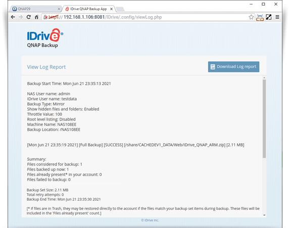 2. Restore: Enables you to restore data from your IDrive account to the QNAP device.