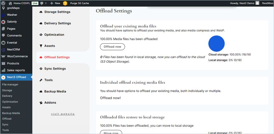 - In the WordPress dashboard, go to Next3 Offload > Offload Settings.